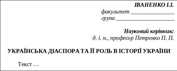 Зразок оформлення тез доповідей студентської конференції