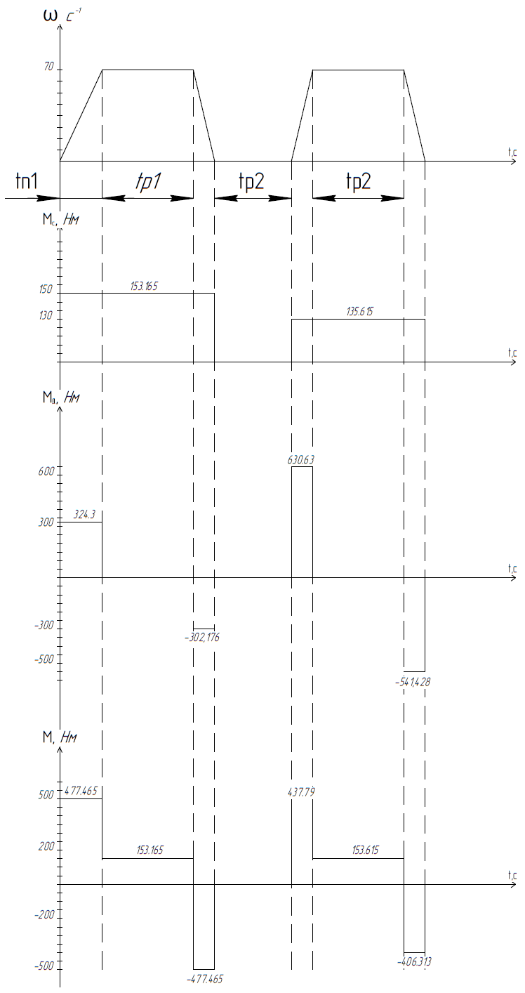 За отриманими результатами будуємо навантажувальну діаграму (рисунок 1.3). Еквівалентний момент з урахуванням погіршення умов охолодження двигуна обчислимо по формулі: