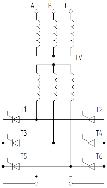 Рисунок 2.1 – Схема трифазного мостового несиметричного керованого випрямляча