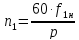 Визначаємо синхронну частоту обертання електродвигуна при частоті 50 гц, та 10 гц, хв-1: