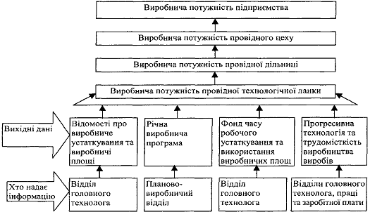 послідовність розрахунків виробничої потужності підприємства.