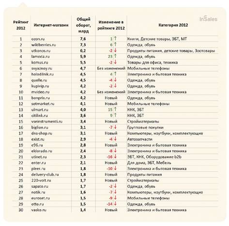 Рисунок 3. Топ-30 интернет-магазинов Рунета за 2012год.
