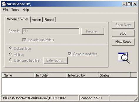 VirusScan проверяет диск