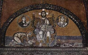 Среди произведений константинопольской монументальной живописи XI века самой поздней является мозаика южной галереи св. Софии с изображением восседающего на троне Христа, которому Константин IX Мономах (1042-1055) и императрица Зоя (ум. 1050) подносят дары для Великой церкви.
