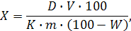 m - масса сырья в г.