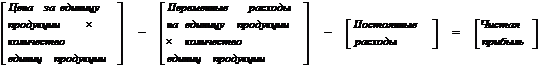 выручка - переменные затраты - постоянные затраты = чистая прибыль,