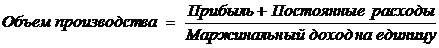 определения объема производства с заданной прибылью: