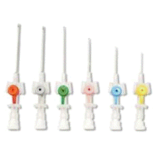 Мы используем стальные иглы и иглы-бабочки только для проведения одноразовых краткосрочных инфузий. Выбираем минимально возможный размер и длину катетера, которые обеспечат проведение назначенной терапии, исходя из состояния вен пациента. Внутривенные катетеры с канюлями из тефлона или полиуретана реже вызывают развитее тромбозов и меньше травмируют венозную стенку. Предпочтительно использовать рентгеноконтрастные канюли. Используем ПВК с механизмом защиты от укола и разбрызгивания крови при венепункции в случаях: