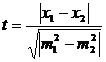 табличными значениями t для числа степеней свободы, равно nl+n2-2 зададим