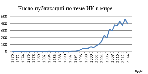 Рис.1. Рост числа публикаций на тему интеллектуального капитала в мире за