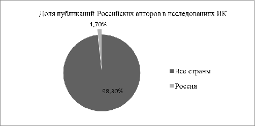 Рис.2. Доля публикаций российских авторов в общем числе исследований ИК