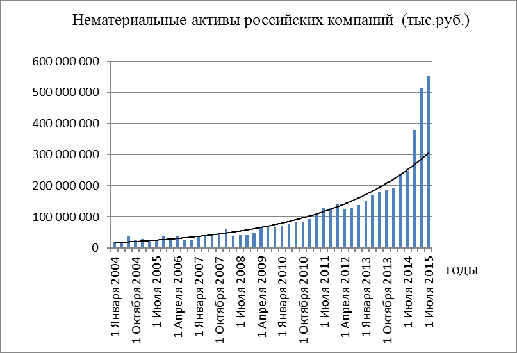 Рис. 3. Рост НМА российских компаний за период 2004-2015 гг.