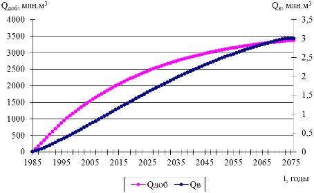 Рис.8. Динамика накопленной добычи газа и вторжения воды в залежь