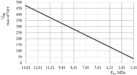 Рис.9. Зависимость изменения безводного дебита с падением пластового