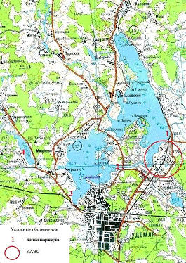 Рисунок 1.Карта Удомельского района с обозначенными водопунктами