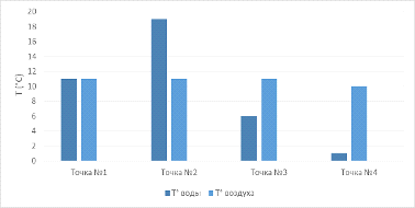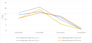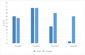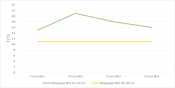 Таблица 1 - Результаты измерения температурных режимов в точках маршрута