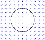 Рисунок 3 - схема распределения приливных сил в проекции на плоскость, перпендикулярную Эклиптике. Тяготеющее тело либо справа, либо слева.