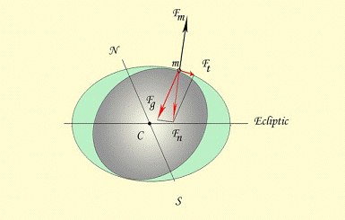 Эти силы крайне слабы и не идут ни в какое сравнение с силами самогравитации (создаваемое ими ускорение в 10 миллионов раз меньше ускорения свободного падения). Однако они вызывают сдвиг частиц воды Мирового океана (сопротивление сдвигу в воде при малых скоростях движения практически равно нулю, в то время как сжатию - чрезвычайно велико), до тех пор, пока касательная к поверхности воды не станет перпендикулярной результирующей силе.