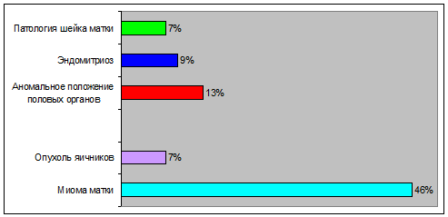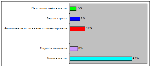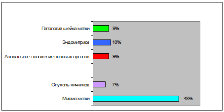 матки составляет 48%, на втором месте эндометриоз - 10%, на третье месте
