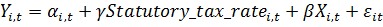 Анализ влияния корпоративного налога на структуру капитала подразумевает наличие изменений в ставке налога. Корпоративная ставка налога на временном промежутке в 6 лет в двенадцати странах из тридцати восьми стран не имеет изменений, что позволяет провести данный анализ. Влияние корпоративного налогообложения рассматривается при помощи анализа ставки налога, деленной на 10 для избегания проблем с интерпретацией и состоятельностью оценок.