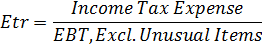 ставка налога, рассчитывается как отношение расходов по налогу на прибыль к