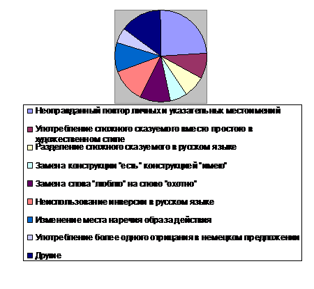 В результате проведенных исследований были классифицированы ошибки в структуре простого предложения, определена их частотность. Определено, что причиной допущенных ошибок является несоблюдение особенностей структуры предложения в немецком и русском языке.