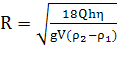 где ρ1 и ρ2 - плотности частицы и жидкости соответственно; η - динамическая вязкость жидкости; V - объем отстойника; Q - объёмная скорость потока жидкости в отстойник; h - глубина отстойника; g - ускорение свободного падения.
