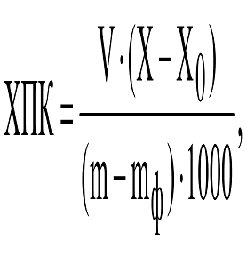 Х0 - содержание ХПК холостой пробы, измеренное фотометрическим методом, мг/л;- а.с. масса отливки целлюлозы (с фильтром), г;ф - а.с. масса фильтра, г;