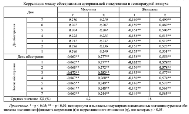 артериальной гипертензии в течение с величиной температуры воздуха в течение