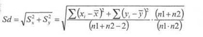 В случае неравночисленных выборок n1¹n2, выражение будет вычисляться следующим