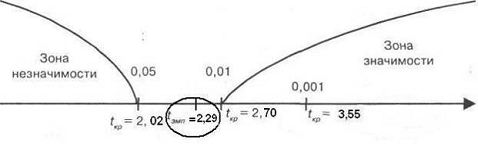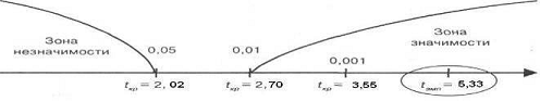 Сравнение полученных t критериев с критическими.