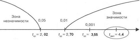 Критерий Стьюдента вычислим по формуле: