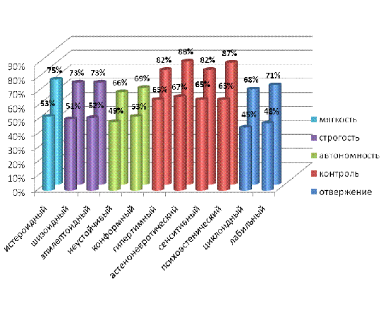 Так, экспериментальным путем нами было выявлено, что во многих семьях, где преобладал высокий контроль (гиперпротекция), отвержение, строгость (жесткие взаимоотношения), дети были тревожными, неуверенными, замкнутыми, склонными к ипохондрическим реакциям, где высокая автономность (гипопротекция) наблюдалась повышенная тяга к удовольствиям, праздности, времяпровождению, в некоторых случаях наблюдалась повышенная тревожность, в семьях, где же преобладала высокая мягкость («Кумир семьи»), дети были демонстративными, истероидными, непослушными, все перечисленные стили воспитания ведут к формированию акцентуаций характера у подростков. Таким образом, на основании всего вышеизложенного можно сделать вывод о том, что предложенная нами гипотеза подтвердилась.