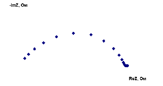 Измерения действительной и мнимой части импеданса проводились в диапазоне частот переменного тока 5-1МГц на фиксированных частотах, распределенных равномерно в логарифмическом масштабе. Амплитуда измерительного переменного тока составляла 200 мВ. Относительная погрешность измерения модуля импеданса составляла не более 5%.