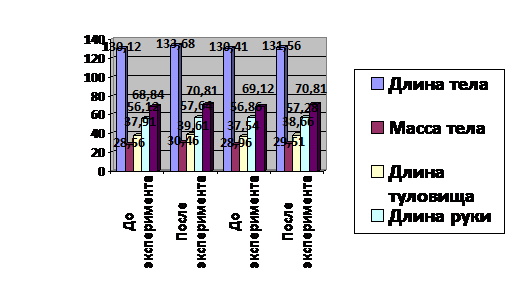 После эксперимента снова были измерены антропометрические показатели тела мальчиков основной и контрольной группы.