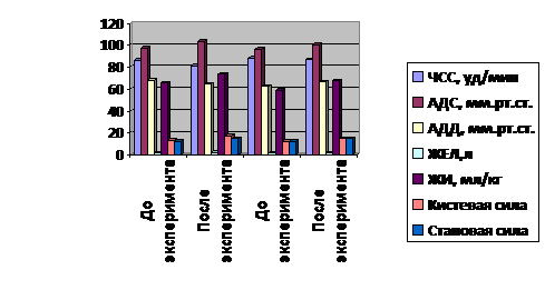 физиометрических показателей организма обеих групп. Результаты отражены в