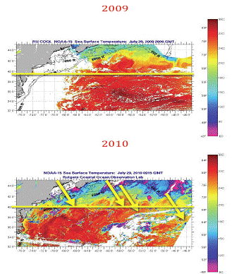 распресненные воды вытесняют менее плотные теплые воды назад в район первичного