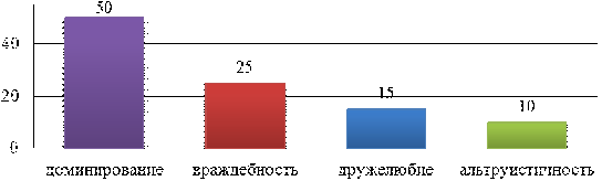 Высокое статусное положение подростка в классе во многом обусловлено тем поведением, стилем взаимоотношений, который свойственен ему среди одноклассников. Подростки - лидеры (звезды) стремятся к лидерству, стремятся удержать свой статус среди одноклассников, поэтому в их отношениях преобладает авторитарный стиль, они несколько эгоистичны, так как привыкли к вниманию сверстников, их агрессивность проявляется в инициативе, стремлении командовать, быть первым и т.д. Однако вместе с тем, подростки - звезды дружелюбны, если ситуация не противоречит их интересам и позиции. Подростки, имеющие статус предпочитаемых, также стремятся к лидерству, однако их лидирующее положение принимается только их ближайшим окружением, а не всем классом. Эти подростки также проявляют некоторую долю агрессивности в общении с лидерами, так как стремятся занять их позицию. Предпочитаемые подростки более дружелюбны, менее агрессивны и подозрительны, более альтруистичны. Принятые подростки демонстрируют склонность к доминированию, но оно сочетается с выраженным дружелюбием. Эти подростки в общении проявляют дружелюбие, внимание, альтруизм, они менее эгоистичны и агрессивны [52, с. 102].