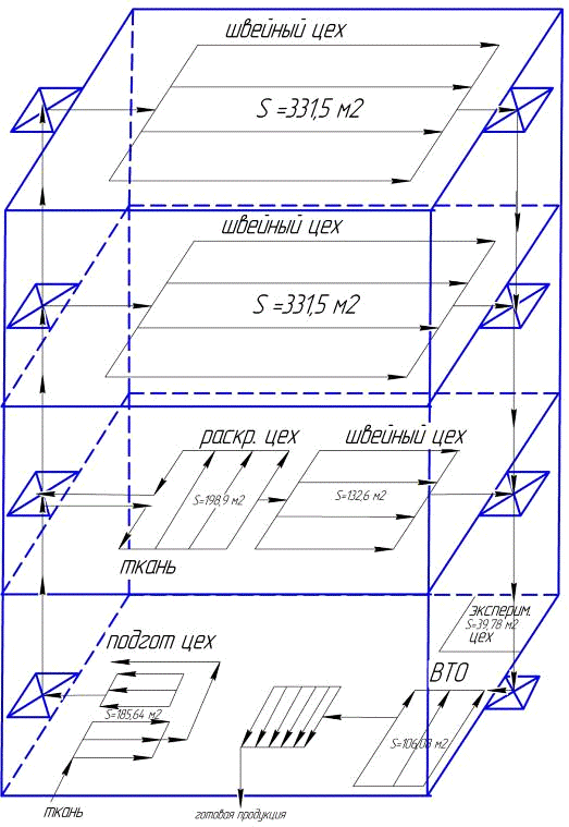При проектировании швейного производства следует принимать во внимание структуру производственных процессов с использованием цехов-потоков.