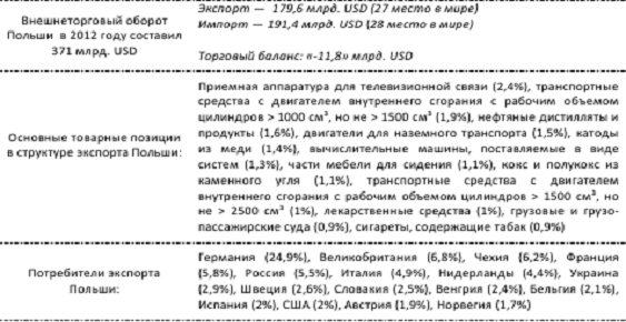 Основные экономические показатели внешней торговли между Польшей и тремя