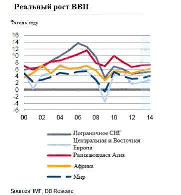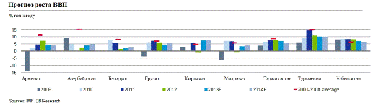 По мнению аналитиков из DB Research, в среднесрочной перспективе темпы роста ВВП большинства бывших советских республик не будут опускаться ниже 5% в год.