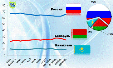 втором Беларусь - 25%, а на третьем - Казахстан - 10%. При этом, по графику