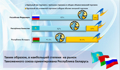 Таможенного союза. Самая высокая доля у Беларуси - почти половина её торговли