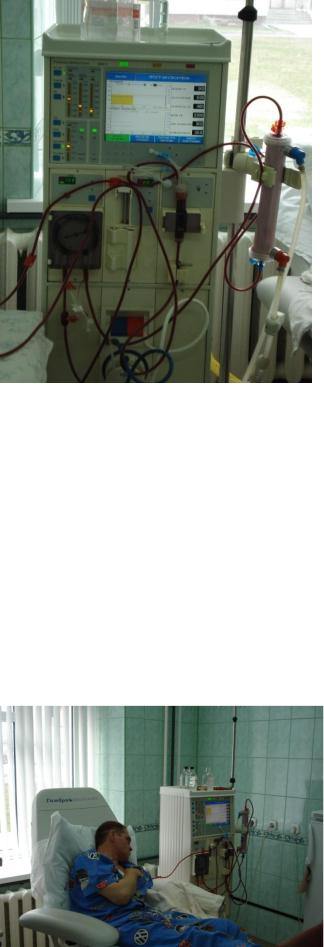 Гемодиализ. Основным методом лечения больных с ТПН является хронический гемодиализ, с помощью которого проводится внепочечное очищение крови (метод основан на диффузии из крови через полупроницаемую мембрану мочевины, креатинина, мочевой кислоты и других веществ, задерживающихся в крови при уремии).