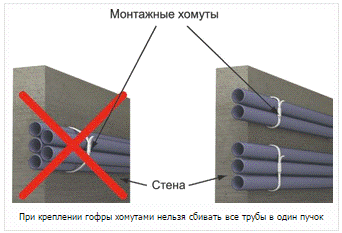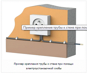 Если один из кабелей заключен в пластиковую трубу, то допускается перехлест проводников. Единственная разница - ширина и глубина штробы будут намного больше. Пластиковые трубы крепятся увэшками или металлическими скобами, если их диаметр превышает 40 мм.