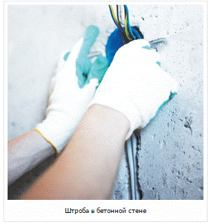 Если ситуация такова, что на голые черновые стены кабель положить не удается или слой штукатурки слишком тонок, то стены придется штробить. Борозда или прямоугольная выемка в стене для кабеля и называется штробой. Сделать ее просто, но зачастую весьма трудоемко.