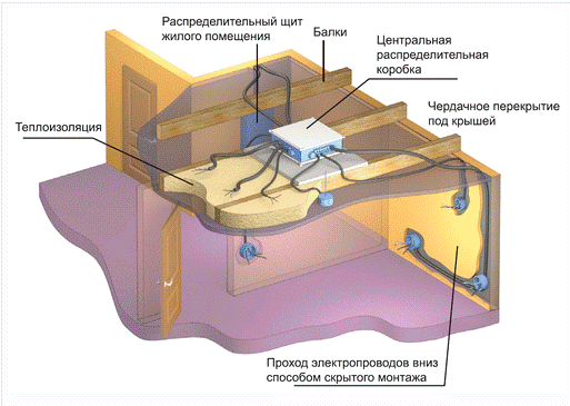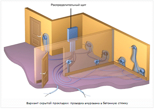 Скрытая прокладка кабеля в перегородках, полах и потолках