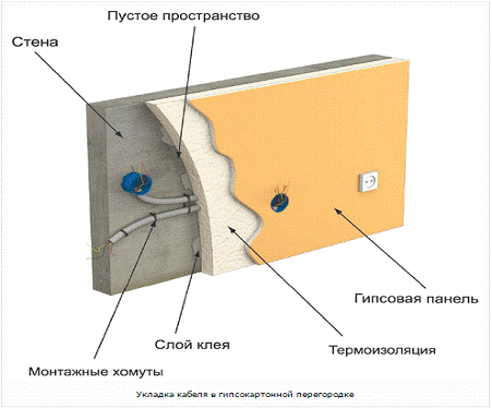 поскольку не требуется штробления, а провода надежно защищены. В потолке