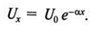 интенсивности ультразвука, влияние затухания на амплитуду описывается формулой