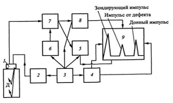 Рисунок 4. Схема ультразвукового дефектоскопа: 1